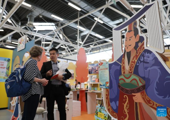 BOLONIA, 1 abril, 2025 (Xinhua) -- Imagen del 31 de marzo de 2025 de expositores conversando en un estand de editoriales chinas durante la 62a Feria Internacional del Libro Infantil de Bolonia, en Bolonia, Italia. La 62a Feria Internacional del Libro Infantil de Bolonia se inauguró el lunes en la ciudad italiana de Bolonia. Reconocida como una de las ferias del libro infantil más grandes e influyentes del mundo, la edición de este a?o ha atraído a más de 1.500 expositores de más de 90 países y regiones. Se espera que la feria reciba a más de 20.000 visitantes. (Xinhua/Li Jing)