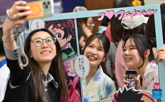 TIANJIN, 20 abril, 2025 (Xinhua) -- Estudiantes se toman fotografías durante el 8° Festival Internacional de Cultura de la Universidad de Estudios Extranjeros, en Tianjin, en el norte de China, el 20 de abril de 2025. Más de 300 estudiantes y profesores de más de 60 países y regiones participaron en el festival. (Xinhua/Sun Fanyue)