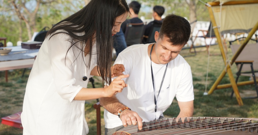 Periodistas de nueve países euroasiáticos disfrutaron de una exquisita ceremonia del té, exploraron el arte de la degustación y se deleitaron con melodías ancestrales de guzheng, un instrumento musical tradicional chino, sumergiéndose en la elegancia cultural china.