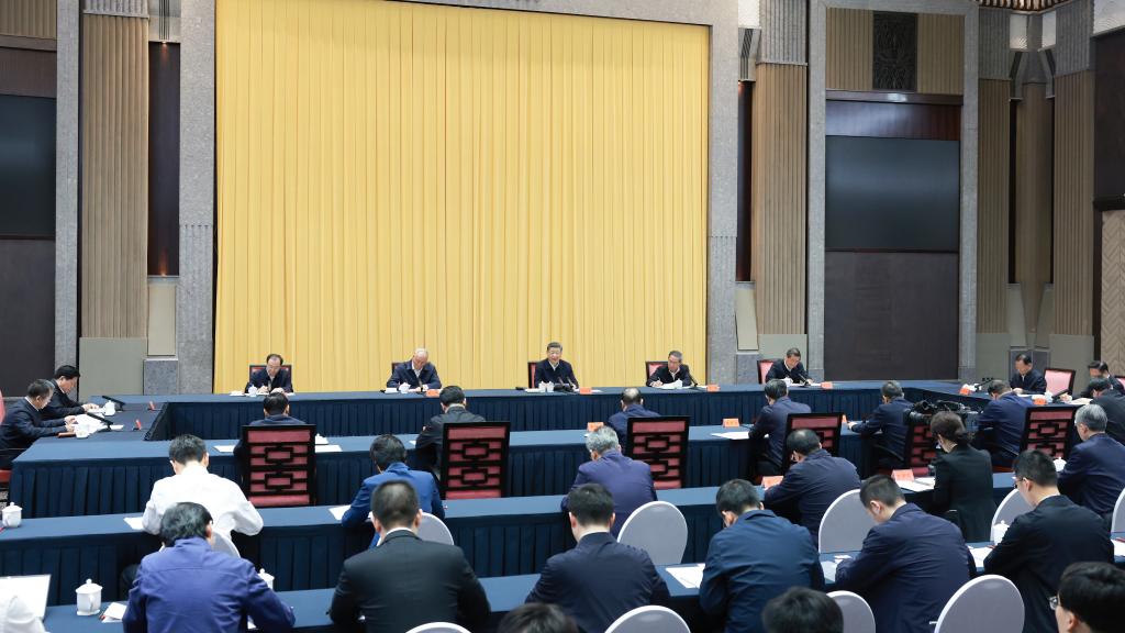 El presidente chino, Xi Jinping, también secretario general del Comité Central del Partido Comunista de China (PCCh) y presidente de la Comisión Militar Central, preside un simposio sobre el desarrollo económico y social de China en el período del XV Plan Quinquenal (2026-2030) y pronuncia un importante discurso, en Shanghai, en el este de China, el 30 de abril de 2025. (Xinhua/Wang Ye)