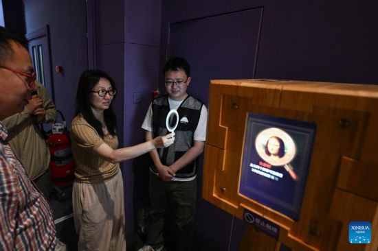 BEIJING, 5 junio, 2025 (Xinhua) -- Una visitante observa una imagen a través de un polarizador durante la exposición "Armonía a través del tiempo y el espacio: Cómo Leonardo da Vinci creó la concordia entre su mundo artístico y científico y el mundo natural" en el Museo de Historia Natural de China, en Beijing, capital de China, el 5 de junio de 2025. La exposición comenzó aquí el jueves y permanecerá abierta hasta el 19 de octubre. (Xinhua/Chen Zhonghao)