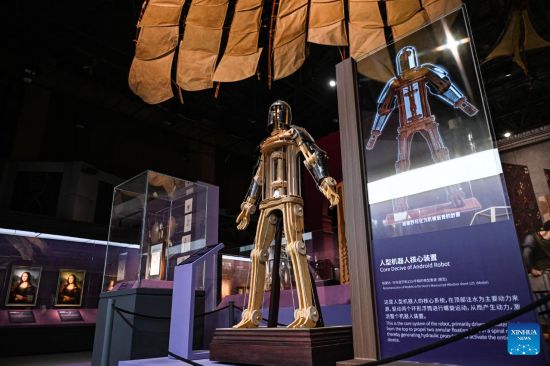 BEIJING, 5 junio, 2025 (Xinhua) -- Imagen del 5 de junio de 2025 de un prototipo de robot androide reconstruido a partir del manuscrito de Leonardo da Vinci durante la exposición "Armonía a través del tiempo y el espacio: Cómo Leonardo da Vinci creó la concordia entre su mundo artístico y científico y el mundo natural" en el Museo de Historia Natural de China, en Beijing, capital de China. La exposición comenzó aquí el jueves y permanecerá abierta hasta el 19 de octubre. (Xinhua/Chen Zhonghao)