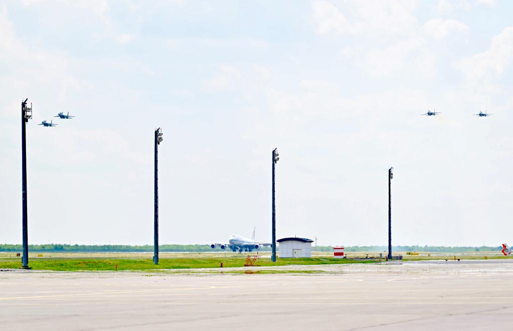 Una vez que el avión de Xi ingresó en el espacio aéreo kazajo, cazas de las fuerzas de defensa antiaérea de Kazajistán despegaron para escoltarlo.