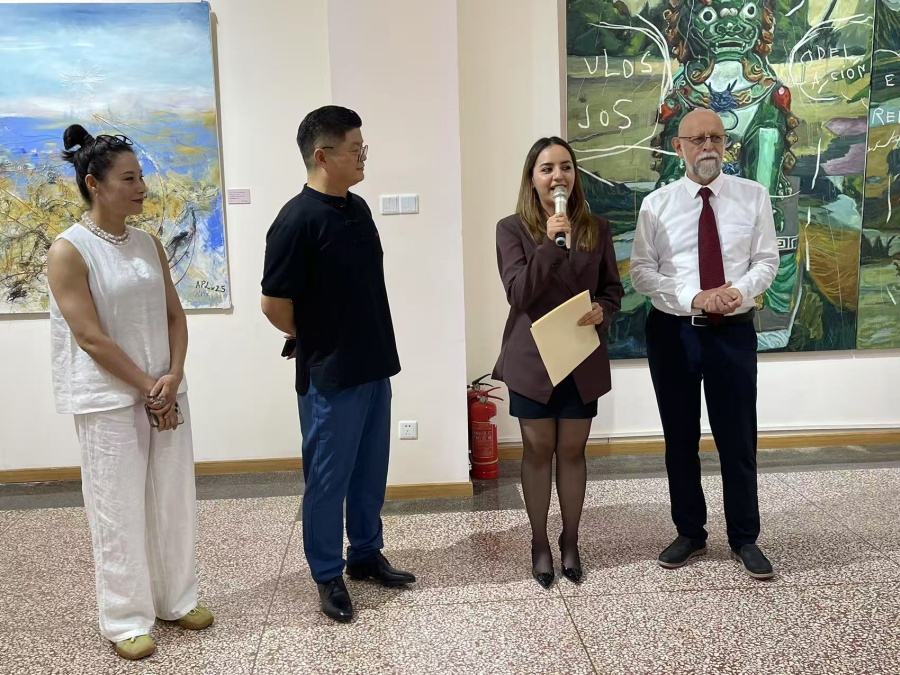Durante su intervención, Azucena Cardosa, encargada de Asuntos Culturales y de Turismo de la Embajada de México en China, destacó que “esta exposición no es solo un encuentro de estilos o técnicas, sino un diálogo íntimo entre sensibilidades, una conversación que trasciende fronteras y se plasma en colores, formas y símbolos compartidos”.