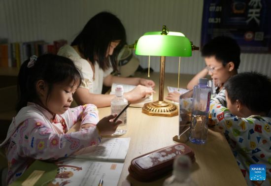 HANGZHOU, 1 julio, 2025 (Xinhua) -- Una ni?a realiza tareas escolares en un refugio antiaéreo, en Hangzhou, en la provincia de Zhejiang, en el este de China, el 1 de julio de 2025. Un total de 6 refugios antiaéreos fueron abiertos al público el martes, ofreciendo a los residentes alivio del clima caluroso. Este servicio de dos meses es una tradición de 20 a?os en la ciudad. (Xinhua/Han Chuanhao)