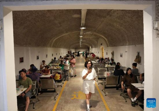 HANGZHOU, 1 julio, 2025 (Xinhua) -- Residentes pasan su tiempo libre en un refugio antiaéreo, en Hangzhou, en la provincia de Zhejiang, en el este de China, el 1 de julio de 2025. Un total de 6 refugios antiaéreos fueron abiertos al público el martes, ofreciendo a los residentes alivio del clima caluroso. Este servicio de dos meses es una tradición de 20 a?os en la ciudad. (Xinhua/Han Chuanhao)