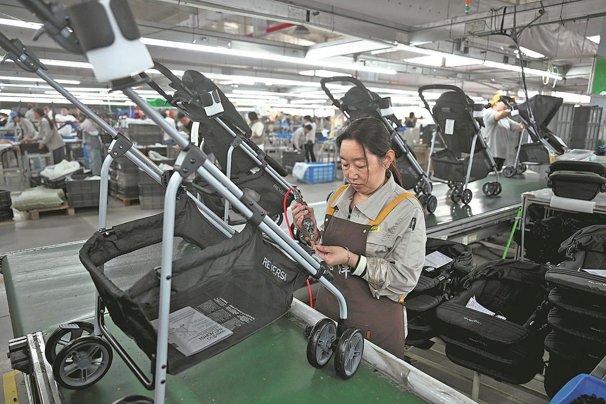 Retoques finales a los cochecitos de bebé en una línea de montaje el 18 de abril de 2025, en el condado Pingxiang. ZHAO YONGHUI/PARA CHINA DAILY