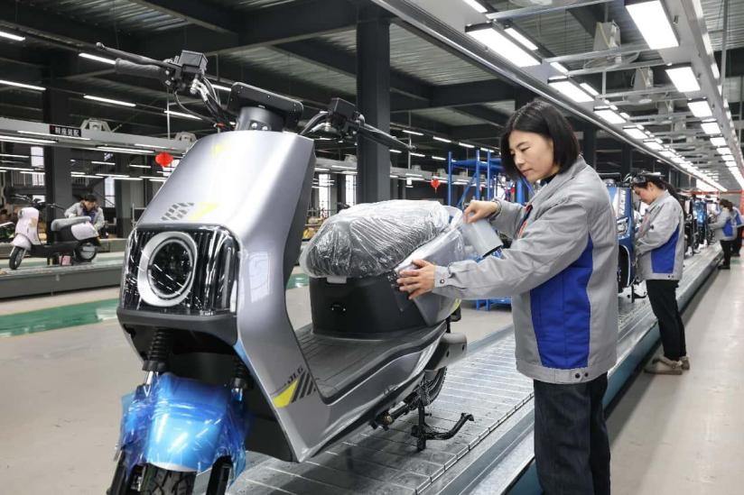 | En el taller de producción de una empresa de bicicletas eléctricas en la ciudad de Xingtai, provincia de Hebei, empleadas trabajan para completar pedidos de exportación. Foto: Chai Gengli / Diario del Pueblo digital |