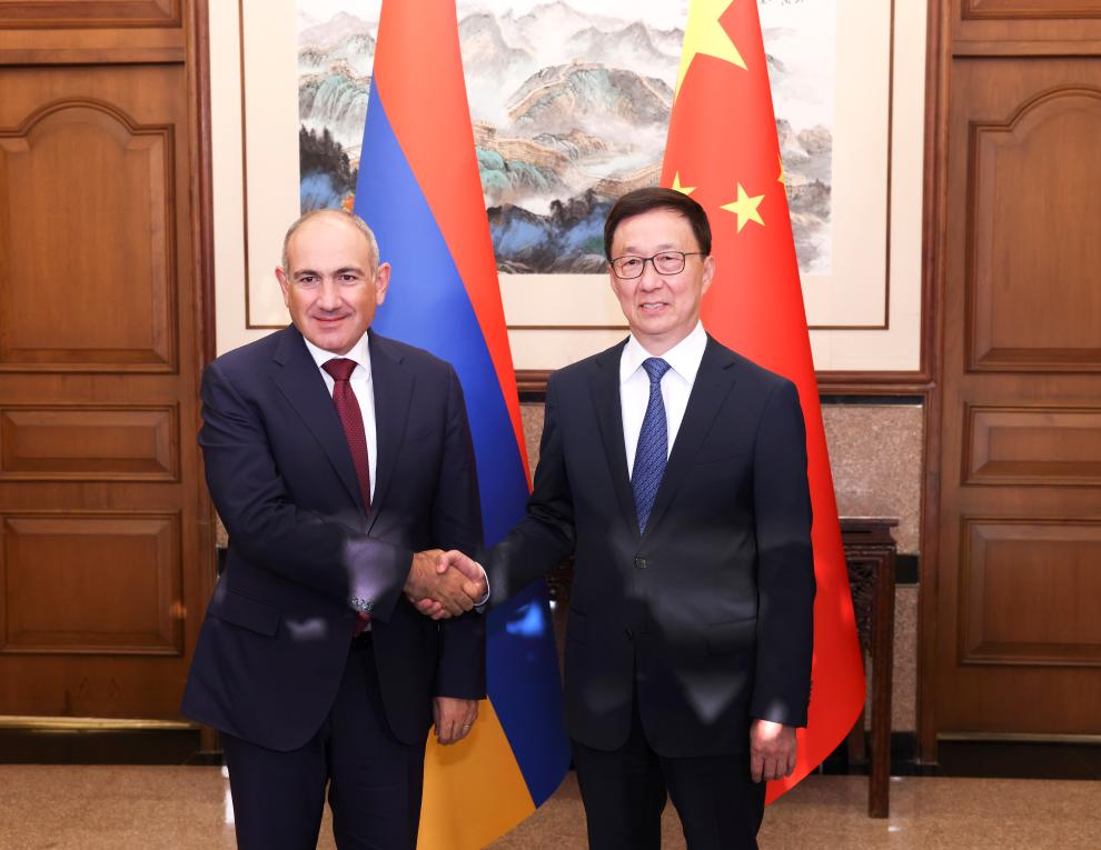 El vicepresidente de China, Han Zheng, se reunió hoy miércoles en Beijing con el primer ministro de Armenia, Nikol Pashinyan.
