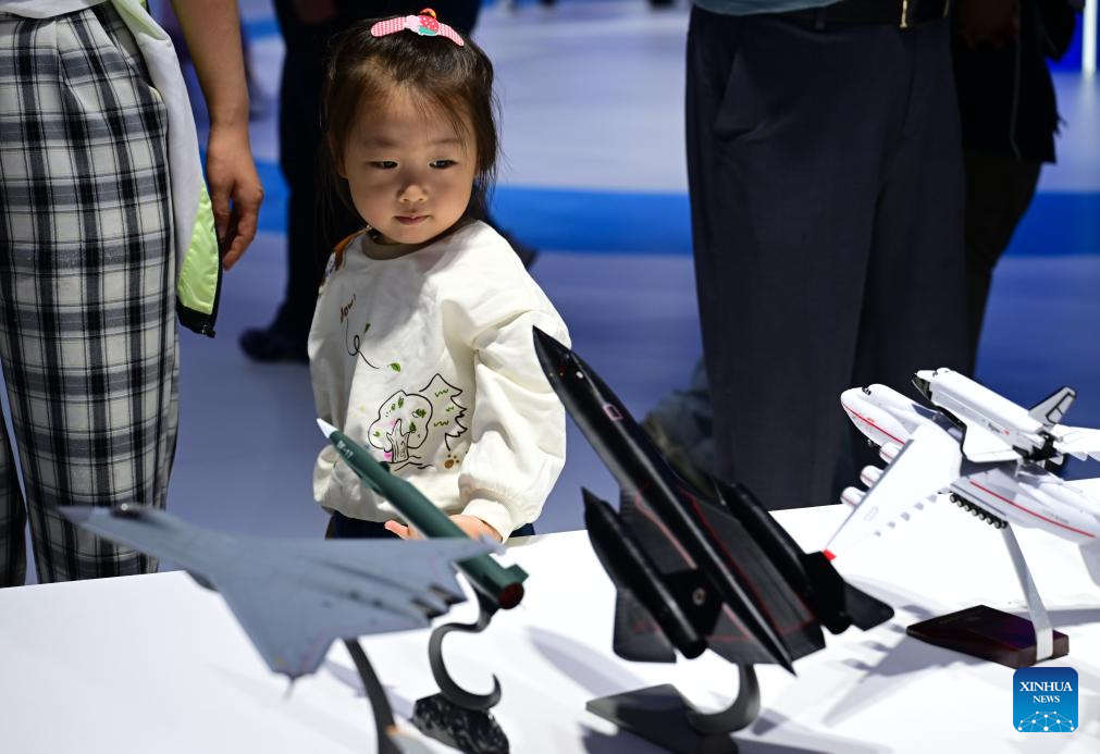 | HEFEI, 20 septiembre, 2025 (Xinhua) -- Una ni?a observa modelos de aviones exhibidos durante la Convención Mundial de Manufactura (CMM) 2025, en Hefei, en la provincia de Anhui, en el este de China, el 20 de septiembre de 2025. Bajo el lema "Manufactura inteligente para un futuro mejor", la CMM 2025 comenzó aquí el sábado. (Xinhua/Zhou Mu)