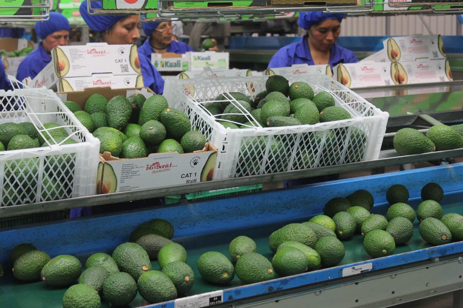 Imagen de archivo de empleadas seleccionando aguacates Hass conocidos también como palta Hass, en la Planta Empacadora de la Agrícola Hoja Redonda, en el distrito El Carmen, provincia de Chincha, departamento de Ica, Perú. (Xinhua/Luis Camacho)