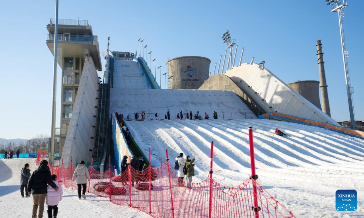La gente disfruta de actividades creativas sobre hielo y nieve en el Big Air Shougang en Beijing, capital de China.…