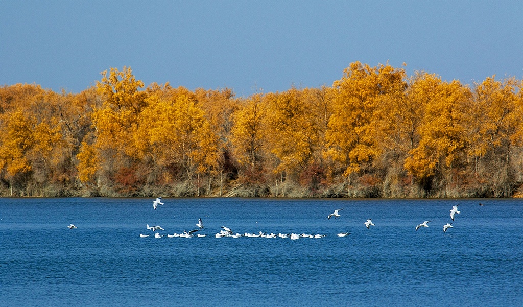 Los árboles de Populus euphratica en el condado de Xayar, región autónoma de Xinjiang Uygur.…