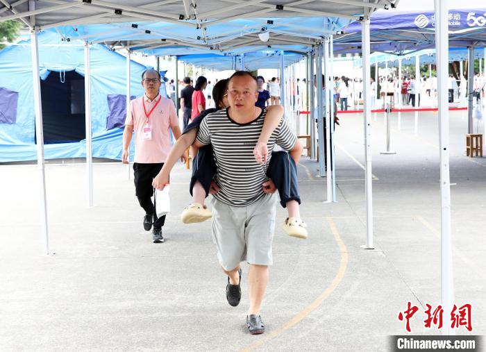 Un hombre que carga con su hija durante 12 a?os en la espalda la lleva hasta el centro de gaokao