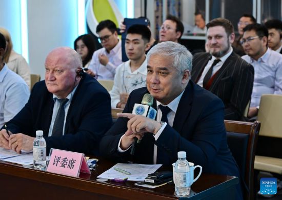 QINGDAO, 8 junio, 2025 (Xinhua) -- Un juez realiza preguntas a los concursantes durante la final del IV Concurso de Innovación y Emprendimiento Juvenil de los Estados Miembros de la Organización de Cooperación de Shanghai (OCS), en Qingdao, en la provincia de Shandong, en el este de China, el 8 de junio de 2025.…