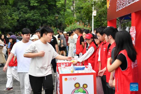 Voluntarios apoyan a estudiantes durante el examen nacional de ingreso a la universidad en Changsha