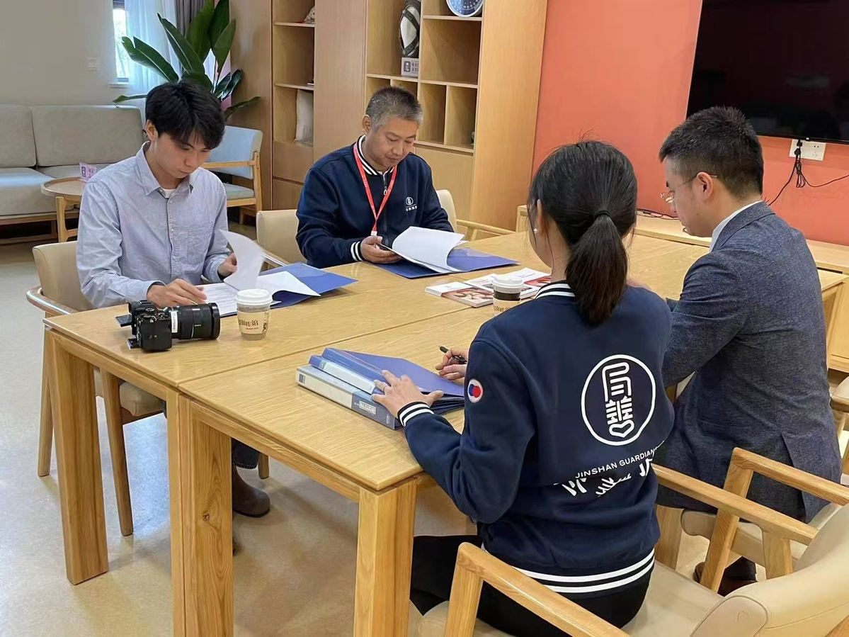 Miembros de Jinshan Guardianship conversan con el personal de un fideicomiso que proporciona fondos de beneficencia para un cliente anciano incapacitado.…