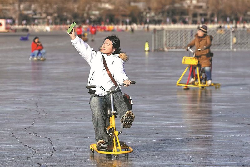 Los visitantes patinan en una pista al aire libre en Shichahai en Beijing el viernes.…
