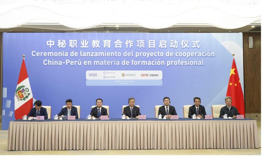 Ceremonia de lanzamiento del proyecto de cooperación China-Perú en materia de formación profesional, celebrada en Chongqing, en el oeste de China, el 17 de diciembre de 2024.…