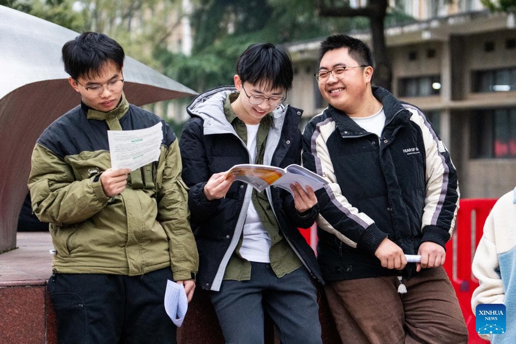 Aspirantes esperan afuera de un sitio de evaluación para el examen de ingreso a posgrado 2025, en Changsha, en la provincia de Hunan, en el centro de China, el 21 de diciembre de 2024.…