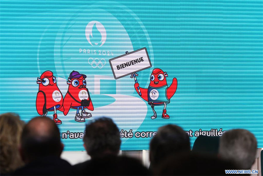 Personas asisten a una conferencia de prensa para el programa de voluntarios de los Juegos Olímpicos y Paralímpicos de París 2024, en Saint-Denis, Francia, el 21 de marzo de 2023. (Xinhua/Gao Jing)…