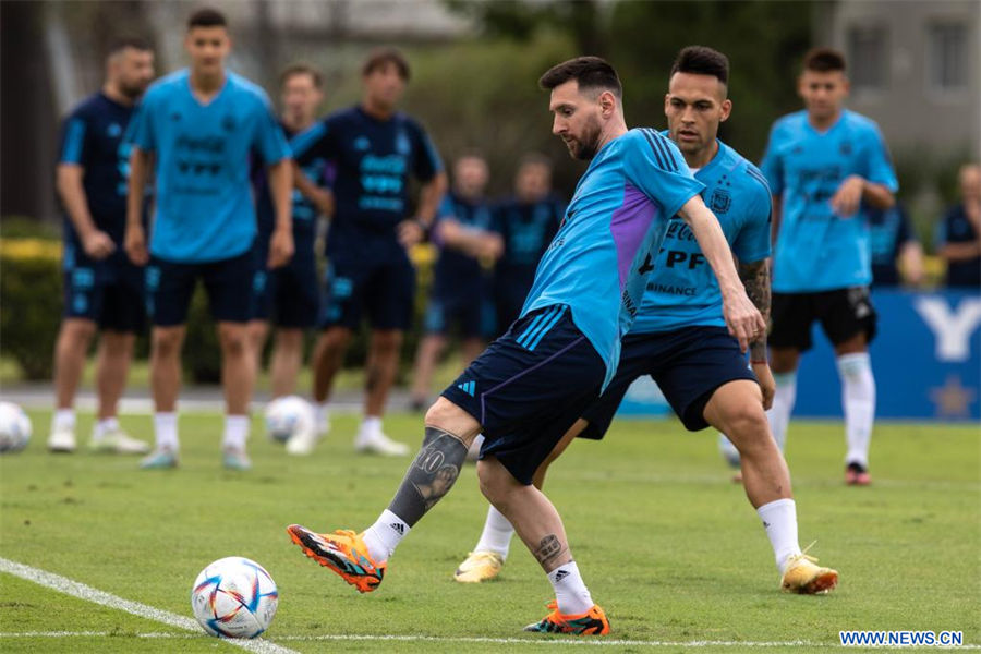 Jugadores de la selección argentina de fútbol participan en una sesión de entrenamiento