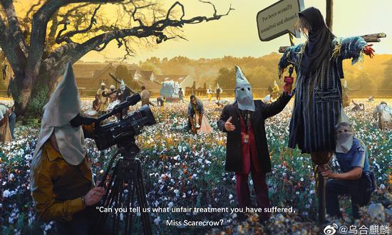 Beijing, 30/03/2021 (El Pueblo en Línea) - "?Puede decirnos qué trato injusto ha sufrido, se?orita espantapájaros?" le pregunta un reportero con capucha del Ku Klux Klan a un espantapájaros que está siendo clavado en una columna de la vergüenza mientras ignora a los esclavos que recogen algodón a sus espaldas.…