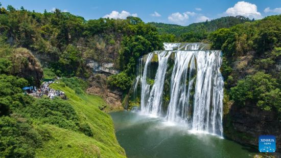 BEIJING, 6 mayo, 2025 (Xinhua) -- Vista aérea tomada con un dron el 4 de mayo de 2025 del área escénica de Huangguoshu, en la ciudad de Anshun, en la provincia de Guizhou, en el suroeste de China.…