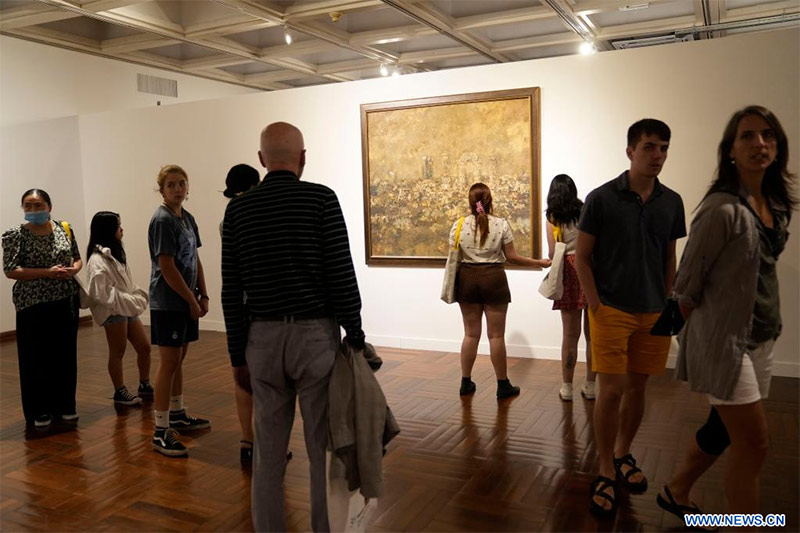 MONTEVIDEO, 23 diciembre, 2022 (Xinhua) -- Imagen del 22 de diciembre de 2022 de personas visitando la inauguración de la exposición "Xieyi Chino.…
