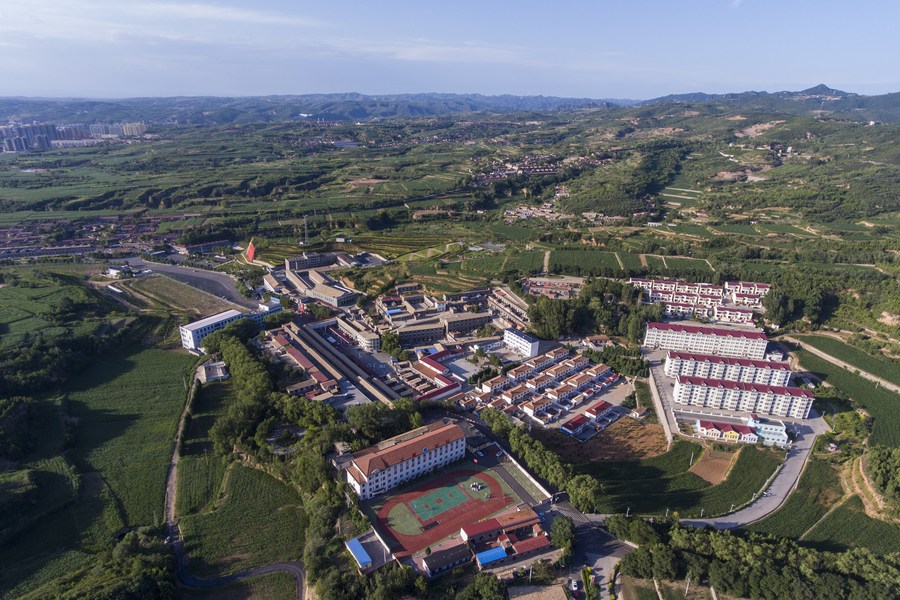Foto aérea tomada el 1 de julio de 2021, muestra una vista del pueblo Dazhai en el norte de China.…