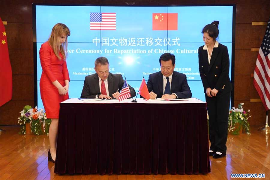EE. UU. devuelve a China 38 piezas de reliquias culturales, se?al de mejora del intercambio cultural entre ambos países
