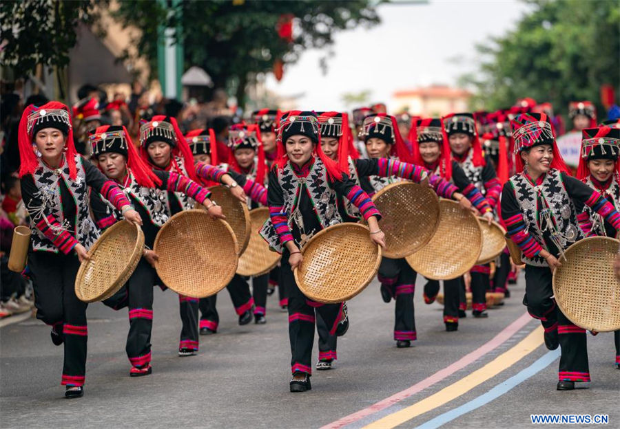 Yunnan: Se celebra largo banquete callejero en distrito de Luchun durante un festival de turismo cultural