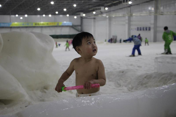 He Huifan, de 3 a?os y natural de Changsha, provincia de Hunan, se hizo famoso por jugar con mu?ecos de nieve a pecho descubierto. La temperatura en el museo de nieve era de -6 grados centígrados. Su abuelo dijo que el ni?o nunca había temido al frío. Desde que tenía un a?o, nunca ha usado ropa de abrigo en invierno y solo se ha resfriado una vez. [Foto de Zi Xiaosong / chinadaily.com.cn]