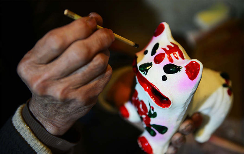 Shandong,05/01/2018(El Pueblo en Línea)- Wei Zhaozhong, un aldeano de casi 70 a?os de edad que vive en la provincia de Shandong, desde los 15 a?os se dedica a la tradicional técnica china de la escultura de arcilla pintada. Después de heredar la habilidad paterna, Wei dise?ó un nuevo tipo de silbato en forma de tigre de arcilla. Las piezas hechas por Wei son coloridas, duraderas y muy sonoras.
