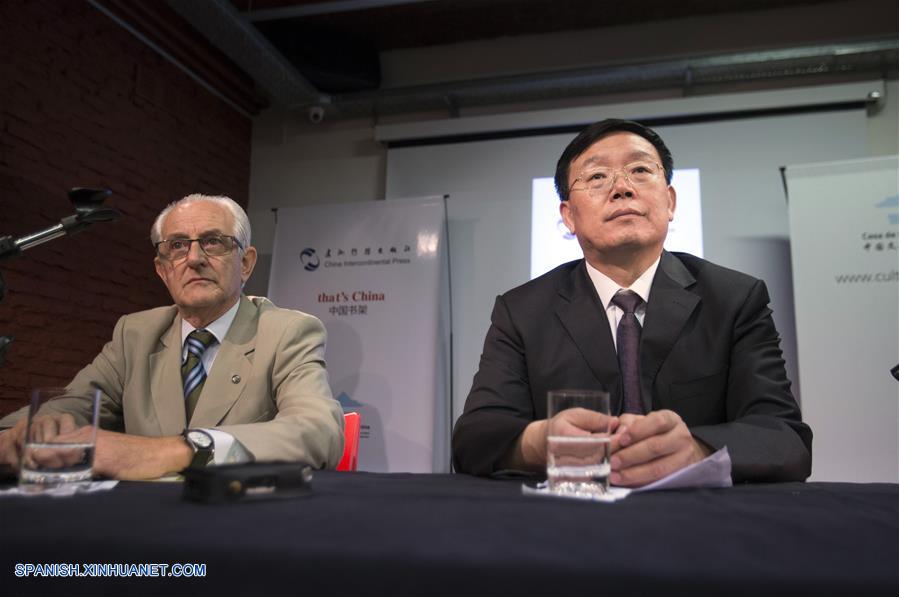 BUENOS AIRES, enero 29, 2018 (Xinhua) -- Zhou Huilin (d), subdirector de la Administración Estatal de Prensa, Publicación, Radio, Cine y Televisión, y el rector de la Universidad del Congreso, Rubén Bresso (i), participan durante la instalación del programa "That's China Bookshelf", en la Casa de la Cultura China en Buenos Aires, Argentina, el 29 de enero de 2018. La Casa de la Cultura China en Buenos Aires, adscrita a la Universidad de Congreso de la Provincia de Mendoza (oeste), inauguró el lunes junto con la editorial China Intercontinental Press (CIP) el primer espacio editorial conjunto, con el propósito de traducir al espa?ol la producción literaria del país asiático. En una ceremonia presidida por representantes del viceministerio de Administración Estatal de Prensa, Publicación, Radio, Cine y Televisión de China; la Cámara Argentina del Libro y la Rectoría de la Universidad de Congreso, se instaló el programa "That's China Bookshelf", de ayuda para la traducción de los textos más reconocidos y destacados en mandarín. (Xinhua/Martín Zabala)