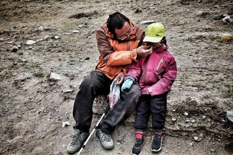 Qi alimenta a su hija durante el recorrido por China. [Foto: proporcionada]