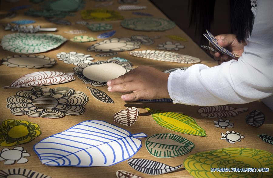 Una ni?a coloca recortes de hojas durante un encuentro cultural en el marco del Día Mundial del Síndrome de Down, en Quito, capital de Ecuador, el 21 de marzo de 2018. De acuerdo con información de la prensa local, ni?os y jóvenes participaron en la conmemoración del Día Mundial del Síndrome de Down llevada a cabo por la fundación "El Triángulo", en donde el 80 por ciento de quienes estudian ahí son de escasos recursos, por lo cual diversas instituciones del Estado, como los Ministerios de Inclusión Económica y Social y Educación, apoyan a la organización que trabaja con personas con discapcidad intelectual. (Xinhua/Santiago Armas)