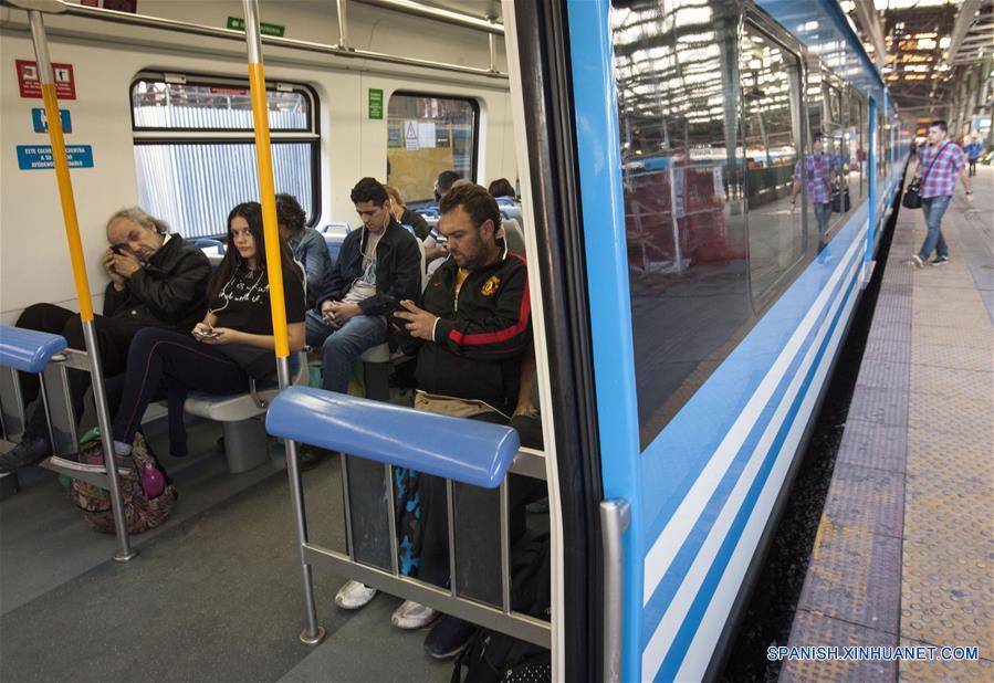 Imagen del 3 de mayo de 2018 de pasajeros esperando la salida de un tren eléctrico fabricado por la empresa china CRRC Corporation Limited, en la terminal Constitución en la ciudad de Buenos Aires, capital de Argentina. Desde la mirada de Fernando Pintos, uno de los instructores técnicos de conducción con más de 36 a?os de experiencia en el Ferrocarril Metropolitano de Buenos Aires en Argentina, los trenes de fabricación china han dotado de nuevas virtudes a la red ferroviaria de su país. Cabinas de conducción más cómodas y amplias, aire acondicionado, velocidad superior, mayor tecnología y capacidad de resolver eventuales inconvenientes, son algunas de las nuevas bondades que, según Pintos, ofrecen los coches eléctricos fabricados por la empresa china CRRC Corporation Limited. Desde 2014, tres de las siete líneas suburbanas del ferrocarril bonaerense han incorporado en su flota a las unidades chinas, como parte de los convenios firmados por el gobierno de Argentina y la estatal CRRC, la mayor fabricante de equipo de transporte ferroviario de China. Los 200 nuevos vagones que llegarán a Argentina en los próximos meses constan de una inversión de 278 millones de dólares, y tras su arribo se terminarán de sustituir los viejos coches de tecnología japonesa, según informó el ministerio argentino de Transporte, Guillermo Dietrich. Estas nuevas unidades permitirán ampliar la longitud de cada tren, además de posibilitar el desplazamiento del conductor y de los pasajeros por cada uno de los salones sin tener que desembarcar en las estaciones. Para Fernando Pintos es un hecho a celebrar que la Línea Roca cuente con una flota totalmente renovada, y destaca la buena adaptación que han tenido los conductores a las nuevas unidades eléctricas. "Bienvenido todo lo que sea compartir el conocimiento y también lograr que la tecnología que hoy está manejando China, que hoy no se tiene en Argentina se pueda aprovechar (...) y lograr en conjunto estos proyectos superadores", reflexionó. (Xinhua/Martín Zabala)