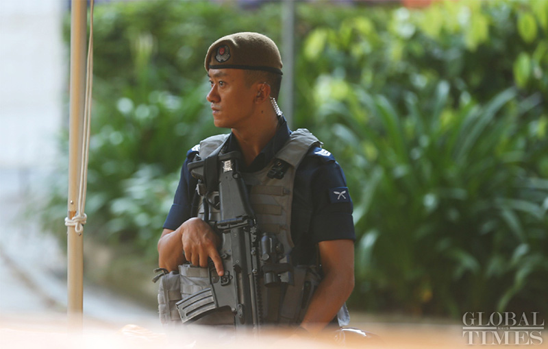 Un soldado de la unidad de Gurkha está de servicio para garantizar la seguridad de la próxima cumbre de Trump-Kim en Singapur el domingo. Foto: Cui Meng / GT