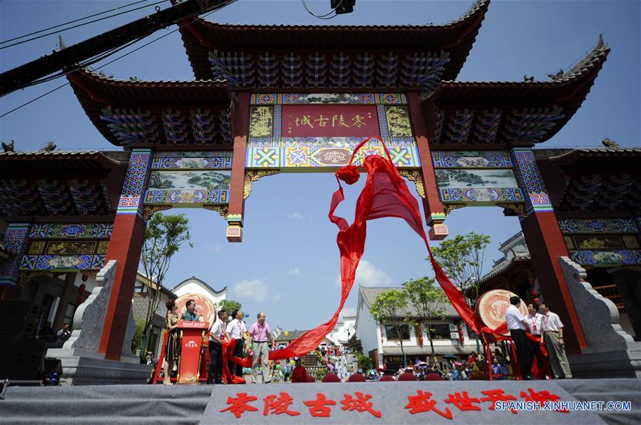 Personas asisten a la ceremonia de apertura del antiguo municipio de Lingling, en la ciudad de Yongzhou, provincia de Hunan, en el centro de China, el 18 de junio de 2018. El municipio antiguo de Lingling, abrió al público el lunes, el cual comprende la ex residencia de Liu Zongyuan y sus estudios para exhibir la herencia cultural intangible. (Xinhua/Liu Yongzhen)
