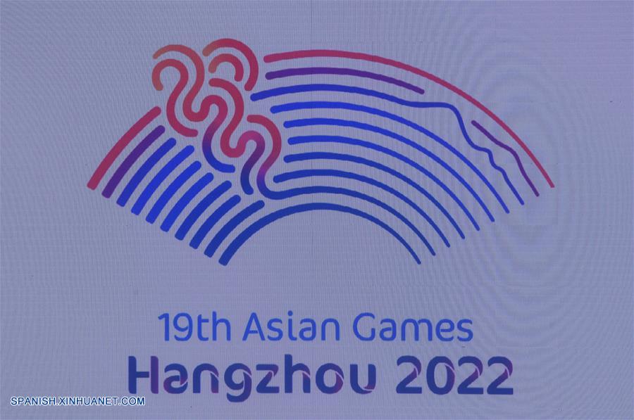 HANGZHOU, agosto 6, 2018 (Xinhua) -- Vista del Emblema oficial de los 19 Juegos Asiáticos Hangzhou 2022, durante su ceremonia de lanzamiento, en Hangzhou, capital de la provincia de Zhejiang, en el este de China, el 6 de agosto de 2018. (Xinhua/Huang Zongzhi)