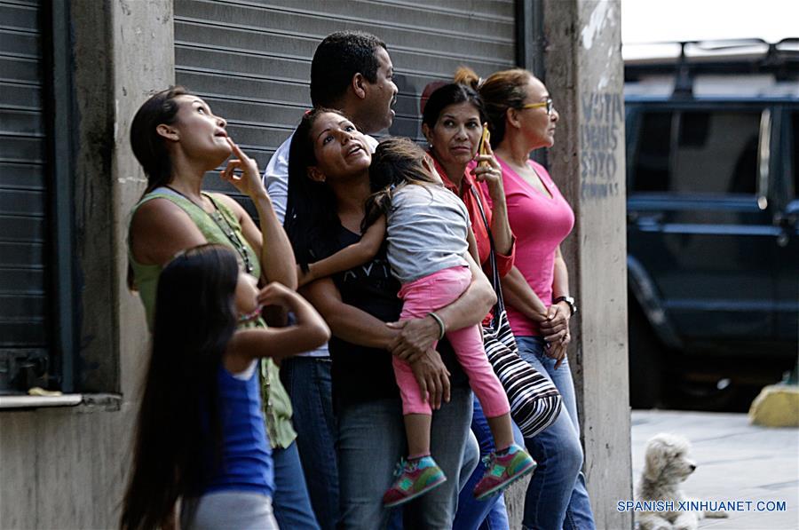 Personas reaccionan después de un sismo, en Caracas, Venezuela, el 21 de agosto de 2018. Un sismo de magnitud 7,3 en la escala de Richter ocurrió el martes a las 17:31:42 hora de Venezuela a 20 kilómetros al nornoroeste de Yaguaraparo, Venezuela, informó el Servicio Geológico de Estados Unidos. (Xinhua/Boris Vergara)