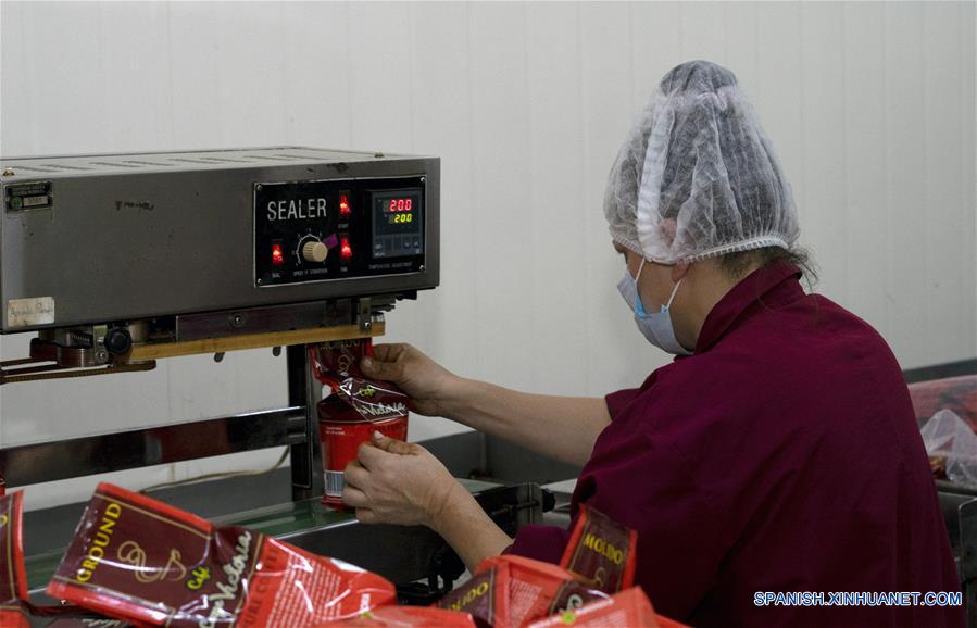 ALAJUELA, noviembre 1, 2018 (Xinhua) -- Imagen del 31 de octubre de 2018, de la empleada Rocio Castro empacando bolsas de café para su distribución, en la cooperativa CoopeVictoria, en la ciudad de Grecia, provincia de Alajuela, Costa Rica. El café ha sido un producto fundamental para la historia de Costa Rica, pues por muchos a?os fue su principal producto de exportación, y tuvo que ver mucho en la formación de su identidad nacional. Desde el inicio de relaciones diplomáticas entre Costa Rica y China, los productores costarricenses de café han visto en ese país asiático una gran oportunidad de competir con su producto de calidad en el gusto del consumidor chino. Precisamente, esto es lo que hará CoopeVictoria en la primera Exposición Internacional de Importaciones de China (CIIE, por sus siglas en inglés) que se llevará a cabo del 5 al 10 de noviembre en Shanghai. CoopeVictoria es la primera cooperativa fundada en Costa Rica hace 75 a?os, y se especializa en la producción tanto de la ca?a de azúcar como del café con el aporte de más de 3,000 productores que exportan el grano entero o molido a diversas partes del mundo. (Xinhua/Esteban Dato)
