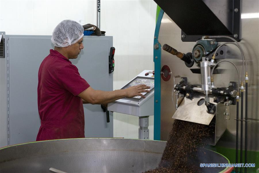 ALAJUELA, noviembre 1, 2018 (Xinhua) -- Imagen del 31 de octubre de 2018, de una persona laborando en la cooperativa CoopeVictoria, en la ciudad de Grecia, provincia de Alajuela, Costa Rica. El café ha sido un producto fundamental para la historia de Costa Rica, pues por muchos a?os fue su principal producto de exportación, y tuvo que ver mucho en la formación de su identidad nacional. Desde el inicio de relaciones diplomáticas entre Costa Rica y China, los productores costarricenses de café han visto en ese país asiático una gran oportunidad de competir con su producto de calidad en el gusto del consumidor chino. Precisamente, esto es lo que hará CoopeVictoria en la primera Exposición Internacional de Importaciones de China (CIIE, por sus siglas en inglés) que se llevará a cabo del 5 al 10 de noviembre en Shanghai. CoopeVictoria es la primera cooperativa fundada en Costa Rica hace 75 a?os, y se especializa en la producción tanto de la ca?a de azúcar como del café con el aporte de más de 3,000 productores que exportan el grano entero o molido a diversas partes del mundo. (Xinhua/Esteban Dato)
