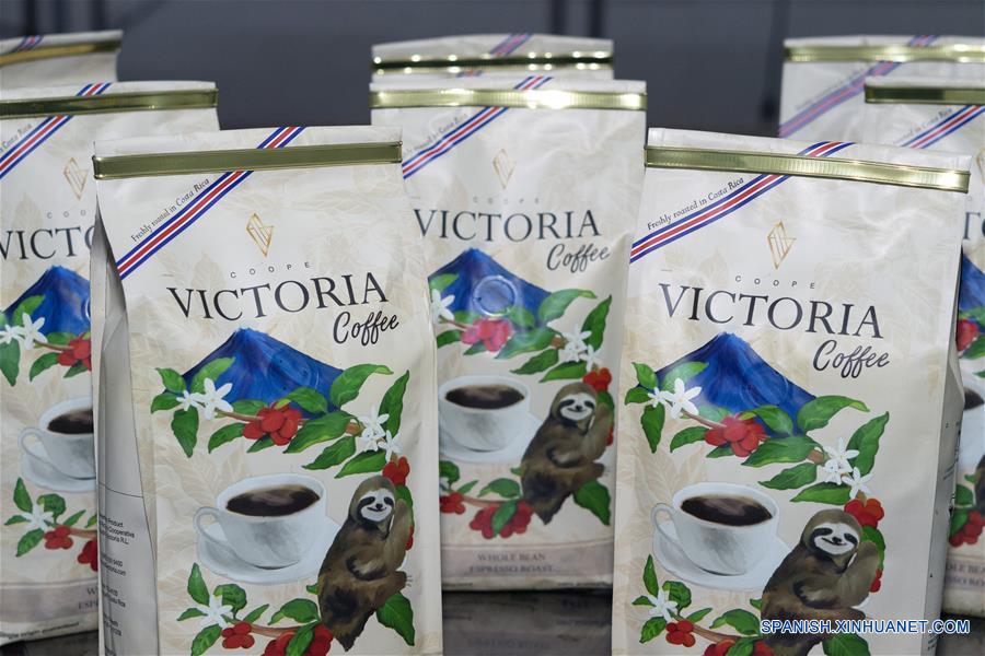 Imagen del 31 de octubre de 2018, de bolsas de café exhibidas en la cooperativa CoopeVictoria, en la ciudad de Grecia, provincia de Alajuela, Costa Rica. El café ha sido un producto fundamental para la historia de Costa Rica, pues por muchos a?os fue su principal producto de exportación, y tuvo que ver mucho en la formación de su identidad nacional. Desde el inicio de relaciones diplomáticas entre Costa Rica y China, los productores costarricenses de café han visto en ese país asiático una gran oportunidad de competir con su producto de calidad en el gusto del consumidor chino. Precisamente, esto es lo que hará CoopeVictoria en la primera Exposición Internacional de Importaciones de China (CIIE, por sus siglas en inglés) que se llevará a cabo del 5 al 10 de noviembre en Shanghai. CoopeVictoria es la primera cooperativa fundada en Costa Rica hace 75 a?os, y se especializa en la producción tanto de la ca?a de azúcar como del café con el aporte de más de 3,000 productores que exportan el grano entero o molido a diversas partes del mundo. (Xinhua/Esteban Dato)