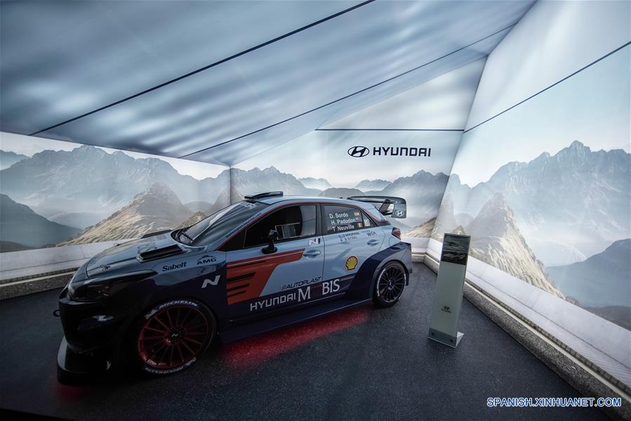 BOGOTA, noviembre 8, 2018 (Xinhua) -- Imagen del 7 de noviembre de 2018 de un automóvil de la marca Hyundai siendo exhibido durante la versión décimo sexta del Salón Internacional del Automóvil de Bogotá, llevada a cabo en el recinto ferial Corferias, en Bogotá, capital de Colombia. Sesenta marcas de automóviles destapan sus principales cartas para el mercado automotriz en la versión décimo sexta del Salón Internacional del Automóvil de Bogotá. Más de mil vehículos de los mayores fabricantes de autos y motocicletas serán exhibidos durante 12 días en el recinto ferial Corferias de la capital Colombiana y entre ellos sobresalen los pabellones de los vehículos chinos. Los lanzamientos de marcas chinas como Changan y Haval protagonizan los eventos del Salón Internacional. (Xinhua/Jhon Paz)