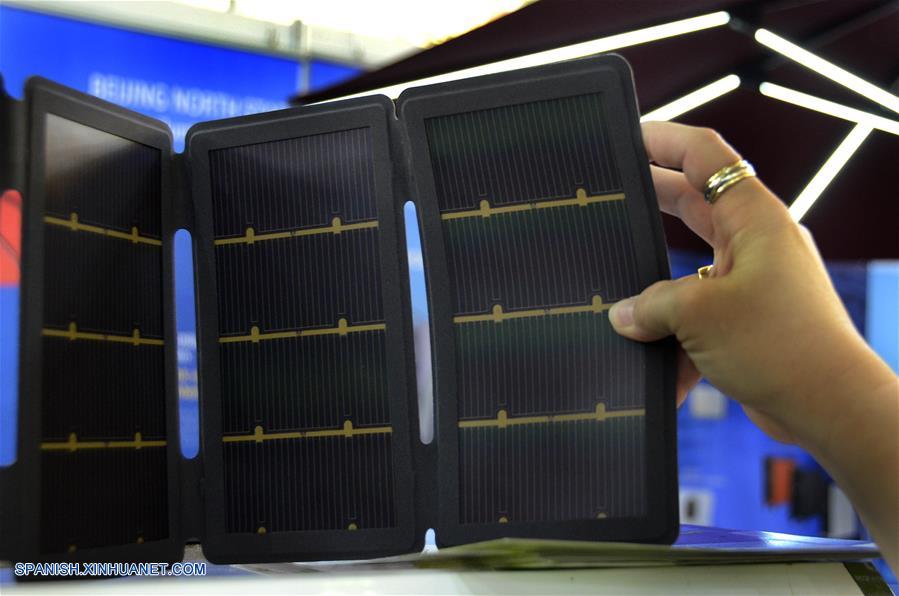 LA HABANA, noviembre 11, 2018 (Xinhua) -- Imagen del 2 de noviembre de 2018, de una persona mostrando paneles solares en el estand de la empresa china Beijing North Star, en el pabellón de China durante la 36 Feria Internacional de La Habana, en el recinto ferial de Expocuba, en La Habana, capital de Cuba. Cuba recibe un promedio de radiación solar de más de 1,800 kilowatts por metro cuadrado al a?o, lo que clasifica a la isla como una potencia energética a partir del uso de las fuentes renovables de energía (FRE), dicen los especialistas. Esa realidad es la que justifica la apuesta de la empresa china Beijing North Star por el mercado cubano, donde ahora se enfocan sobre todo en la comercialización de productos vinculados a las FRE. La empresa, que estuvo presente en la recién terminada 36 Feria Internacional de La Habana, mantiene una larga relación comercial con varias entidades gubernamentales cubanas, como los ministerios de Educación y de Salud Pública, a los que suministra productos que han tenido buena aceptación. (Xinhua/Joaquín Hernández)
