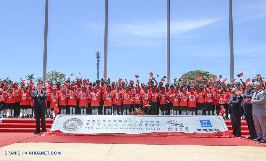 PORT MORESBY, noviembre 16, 2018 (Xinhua) -- El presidente chino, Xi Jinping, y el primer ministro de Papúa Nueva Guinea (PNG), Peter O'Neill, asisten a la ceremonia de inauguración de la Academia Butuka, una escuela de amistad entre PNG y China, en Port Moresby, PNG, el 16 de noviembre de 2018. (Xinhua/Xie Huanchi)