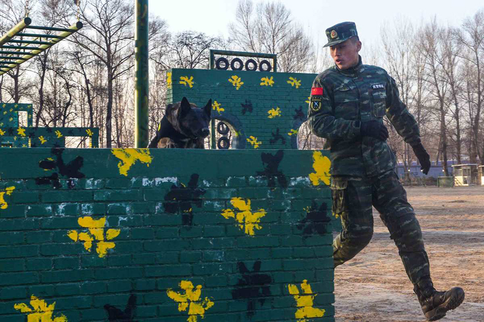 Hao Zhongqiang, oficial de la policía china, entrena al perro Xinqing. Xinzhou, provincia de Shanxi. [Foto: Yuan Haoxiang/ Chindaily.com.cn]