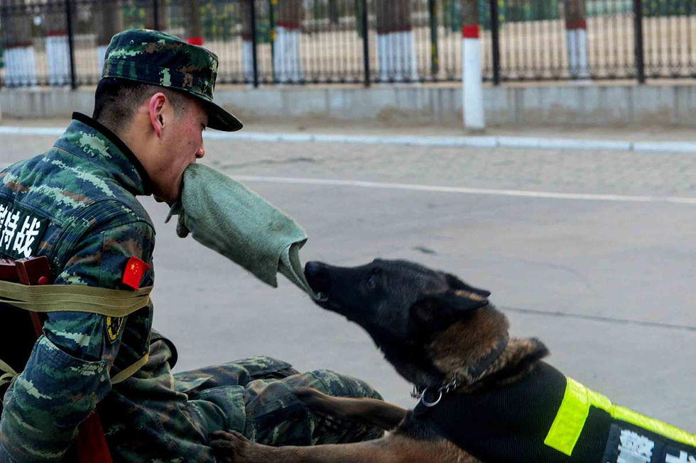 El perro policía Xinqing entrena para rescatar rehenes. [Foto: Yuan Haoxiang/ Chindaily.com.cn]